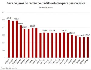 O maior causador do endividamento do brasileiro é o cartão de crédito de acordo com dados do Banco Central. O cheque especial é o crédito mais caro, também de acordo com o Banco Central. Em março de 2019, o cheque especial para pessoa física variou de 7,78% a.a à 512% a.a. A segunda taxa de crédito mais cara é o cartão de crédito parcelado. No mesmo período (março/2019), as taxas de juros do cartão de crédito estavam entre 4,44% a.a. à 498,31% a.a. A média das taxas do crédito pessoal (não consignado) ficaram em terceiro lugar do ranking do crédito mais caro com a variação entre os bancos de 13,38% a.a à a 1.481,83% a.a.
